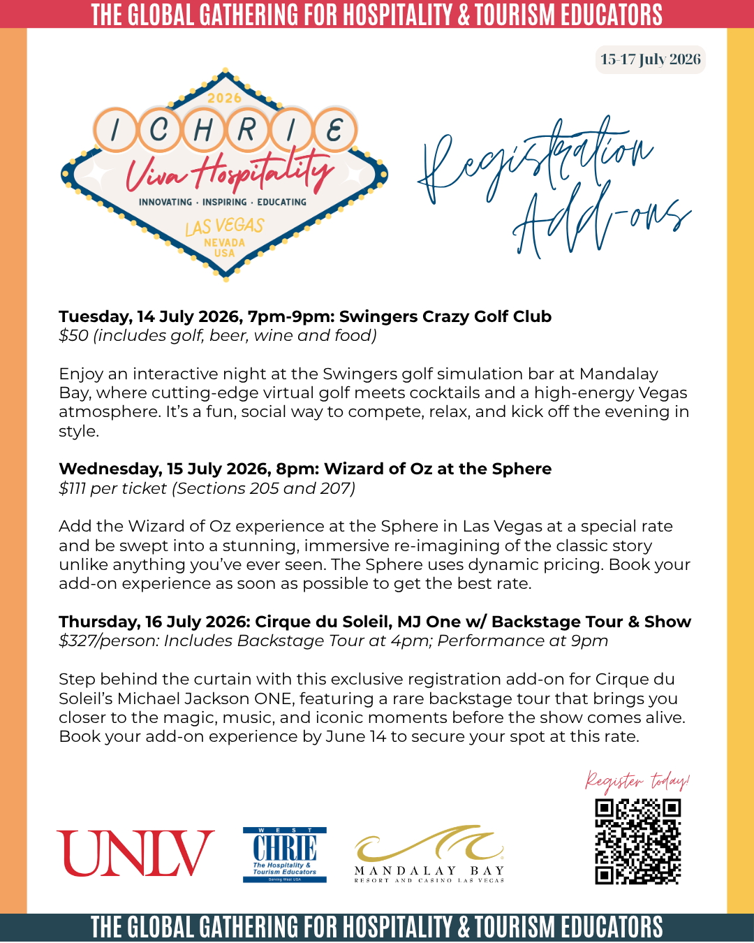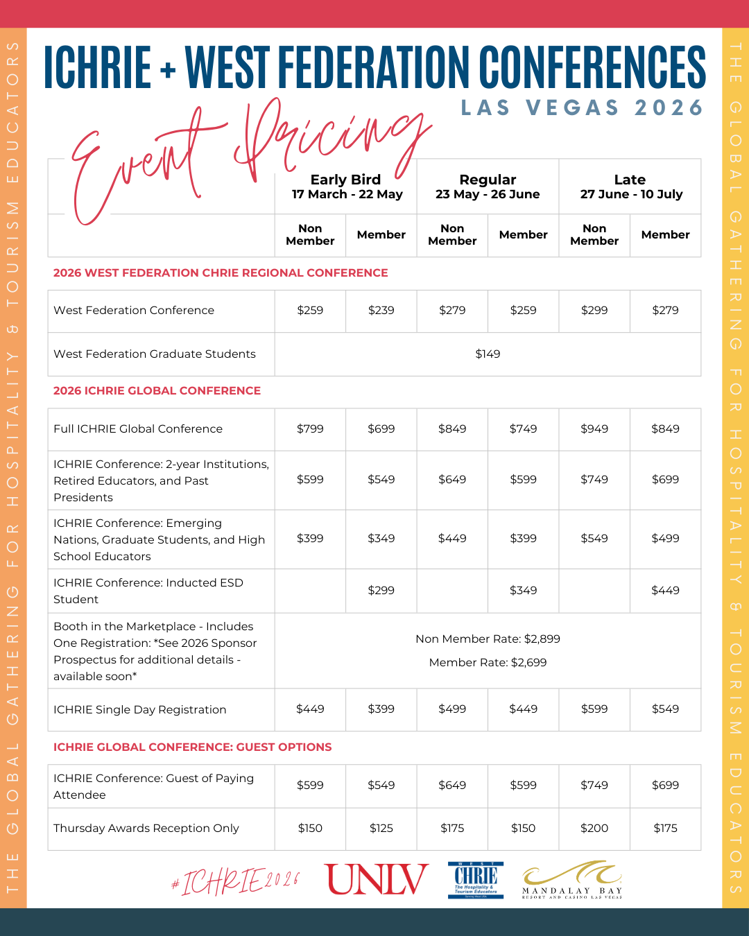 ICHRIE + West Federation Conferences Conference held at both Mandalay Bay & UNLV • 15-17 July 2026